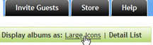 To change the layout of your albums go “Home” and select the option to view as "Large Icons" or as a “Detailed List”, from the top right hand corner or your screen.